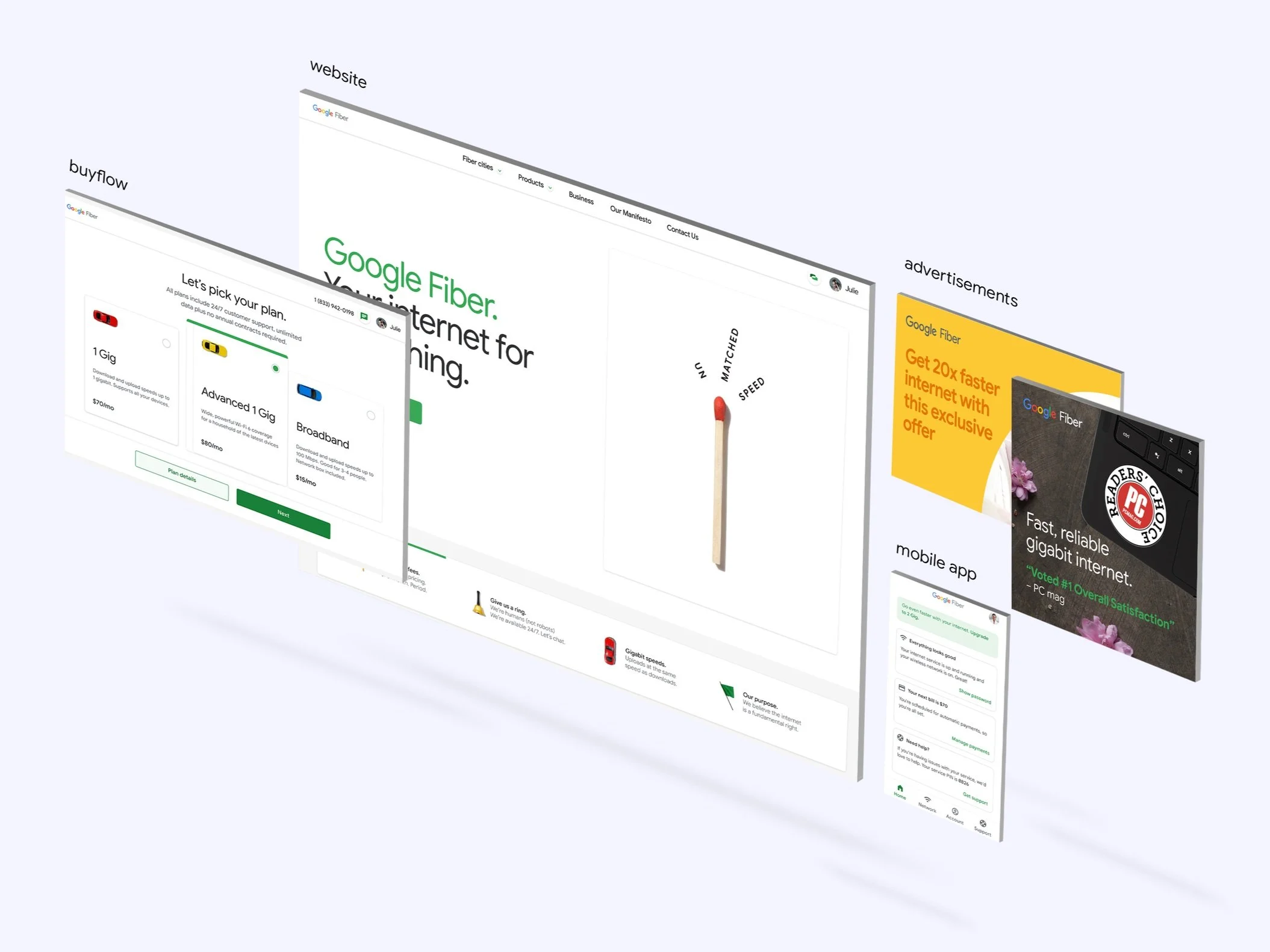 Through meticulous iteration and testing, we successfully crafted a vibrant visual identity that harmonizes with a distinct brand voice. This unified experience extends across all customer touchpoints, from initial advertising campaigns to the final purchase decision. By the time customers reach the GFiber app, they are fully immersed in and engaged with the brand.