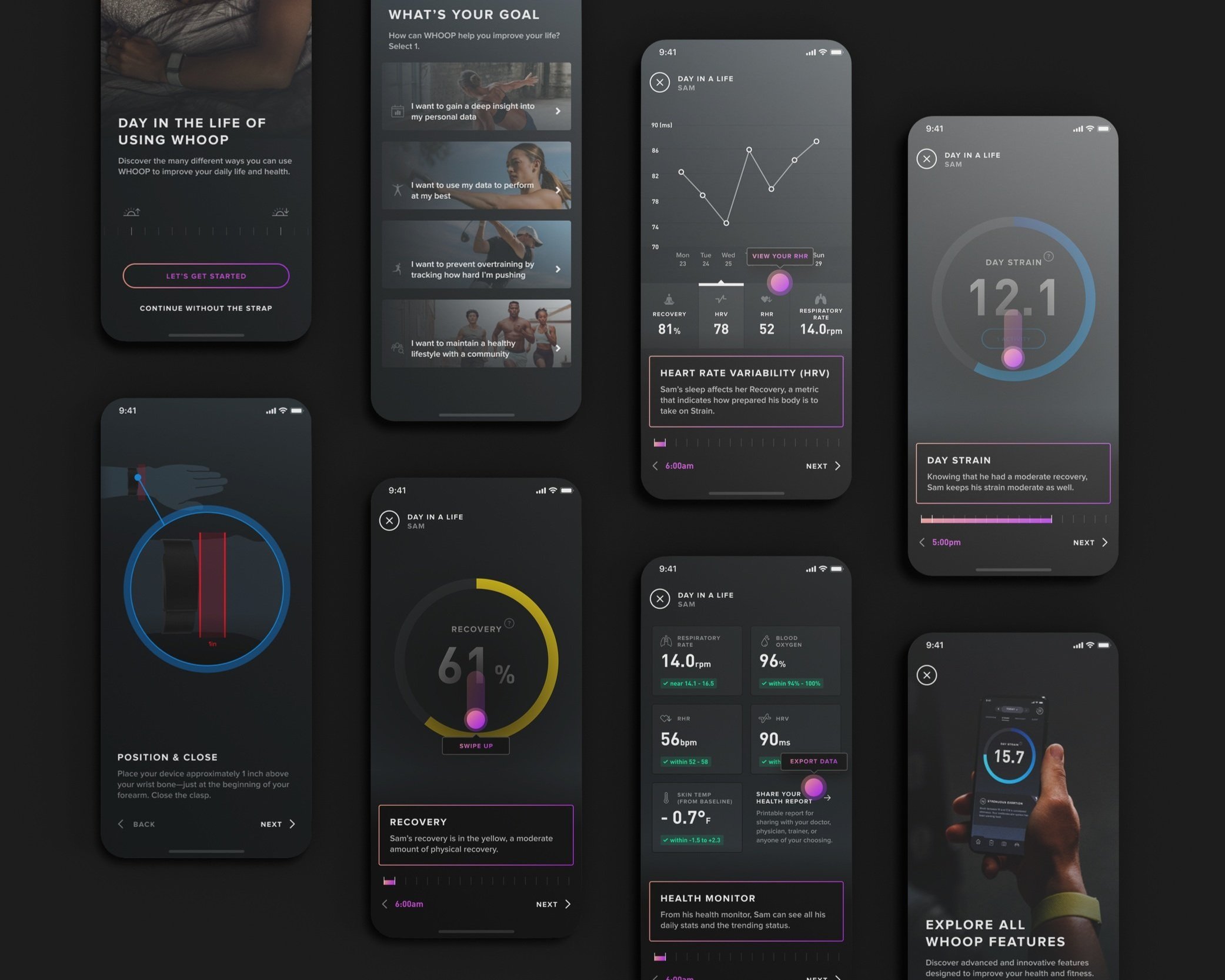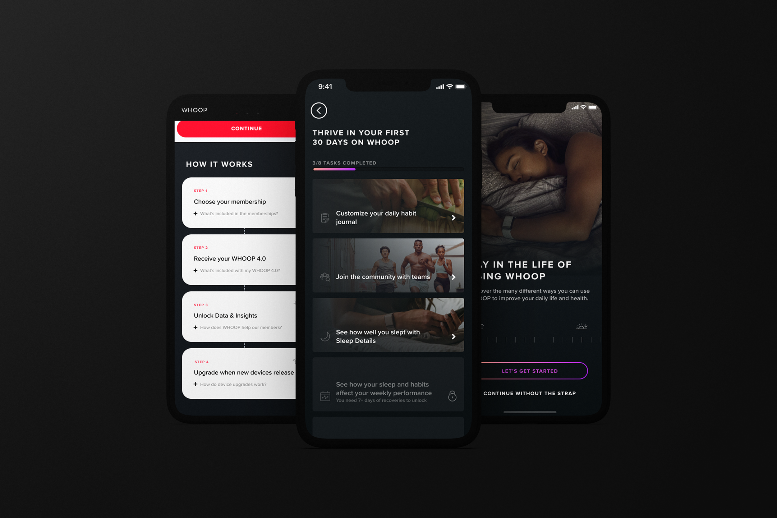 Challenge: In a subscription-based model, ensuring users experience the full value of WHOOP from day one is crucial for long-term retention. We needed to find the optimal way to introduce new users to the product's features and data-driven insights.